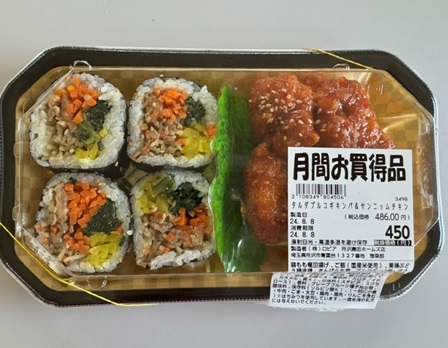 昼食には「タルダプルコギキンパ&ヤンニョムチキン」を購入して