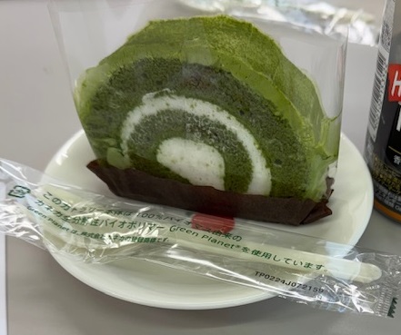 社長からの差し入れ、スタバの「抹茶の米粉ロールケーキ」です。