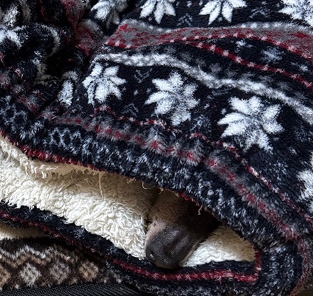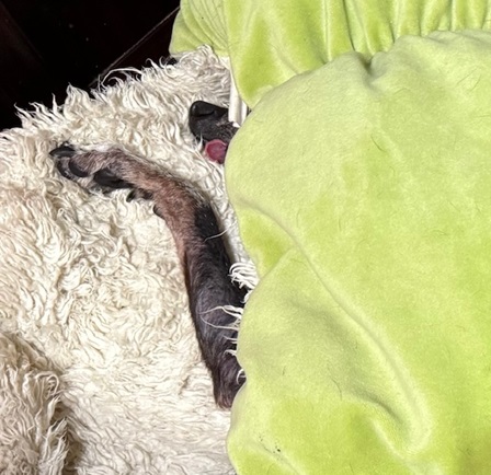前足と鼻先が見えているレイア・・・ちょっとベロもみえる