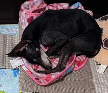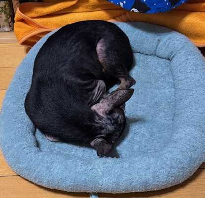 珍しく、レイアが毛布を蹴飛ばして寝ていました