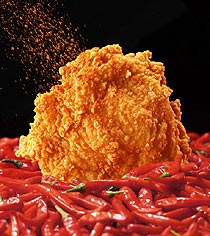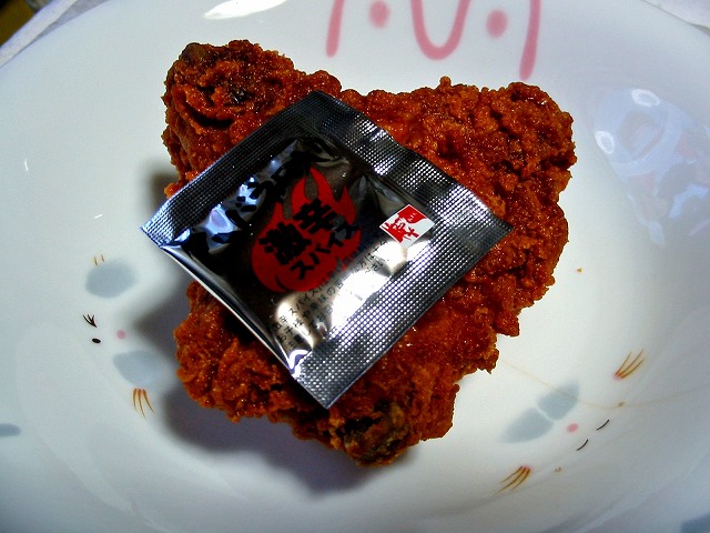 ハバネロ入り激辛レッドホットチキン食べました今まで様々な店でハバネロを使ったメニューが販売されましたがいまいちでした。辛さを感じないと言うか【こんなもんか??】それが今回は思いっきり激辛!!辛さに弱い人は絶対にやめたほうがいいです。ハバネロの粉末スパイス、根性入っていました。今回、ケンタッキーさんターゲットを思いっきり絞りきってきましたね。完全な激辛好きな人のみを相手にしています。チキンに味をしみこませる事無く、スパイスを別にした事で激辛を実現しました。激辛好きには癖になってしまいます。他の激辛物もそうですが水を飲んでも辛さはおさまりません。ヨーグルトなどを用意したほうが良いかもしれません。2月8日までの限定販売ですよ~『ハバネロ入り激辛スパイスつき! レッドホットチキン』発売発売日 2006年1月12日(木)~2月8日(水)※2月9日から激辛スパイスは有料(10円〈税込〉)となります。 販売店舗 全国のKFC店舗 ※一部、販売しない店舗があります。販売価格 「レッドホットチキン」(1ピース) ……… 税込価格220円 ※5ピース以上の場合、1ピースあたり210円。 「レッドホットチキンセット」 ……… 税込価格470円 [レッドホットチキン1ピース、フライドポテト(S)1個、コールスロー(S)1] 「6ピースハーフ&ハーフパック」 ……… 税込価格1,190円 [レッドホットチキン3ピース、オリジナルチキン3ピース]