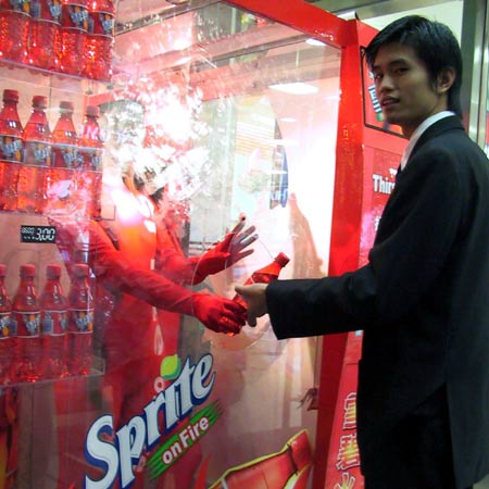 あけましておめでとうございます。今年も宜しくお願い致します。私はなにもないお正月を過ごしていますが皆さんお出掛けなんでしょうね。今年は昔のような冬らしい寒い日が続いています。台湾でさえ雪が降ったそうです。こんな寒いお正月はどこにも出かけたくありません!!酒や食べるものを大量に買い込んでひたすら閉じこもっています。朝からPCに向かっていつも通りネット巡回中にちょっとだけ面白いニュースに遭遇しました。「美女自販機」登場、破壊行為に究極の解決策(中には本物の美女が入っています)福建(ふっけん)省・福州(ふくしゅう)市で一昔前に大流行した「自動販売機」が、「有人自動販売機」になって街に戻ってきた。中国新聞社が伝えた。「自動販売機」は、ほとんどが人為的に破壊された。しかし、このたび登場した「有人自動販売機」は、硬貨を入れると中の女性が、必要な商品を手渡ししてくれるというシステム。新自販機は、商品だけでなく、中にいる女性の容姿もはっきりと見ることが特徴。美女からジュースを受け取れるとあって、写真の男性も思わず顔がほころぶ。破壊行為防止と売上げ増の一石二鳥、「まさに究極の解決策だ」との声も。上海にも「美女自販機」出現、アフロ系で勝負 福建(ふっけん)省・福州(ふくしゅう)市に突如登場して話題を呼んだ「美女自販機」が、今度はビジネスの街、上海市にも姿を現した。23日付で中国新聞社が伝えた。写真が「美女自販機」。チャンと貨幣の投入口もある。しかし商品は手渡し。赤がベースとなった奇抜なファッションは遠くからでも目立つ。「今度はアフロ系で、売り上げ倍増に勝負!」といったところ。★ これって自販機? 自動ではなく手渡し機では!! すでに若者の間で人気が出てきたそうです。 ここ福建は日本から出張で訪れる人が多いそうです。 何やら新たな展開が予想できます。