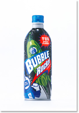 「サントリー バブルロケット 宇宙味」「バブルマン」に、“宇宙味”の新フレーバーが登場!今まで食べ物、ドリンクなどの新製品が出るたび新しい、珍しいものに興味がある私としてはそのキャッチコピーを元に味を想像すします。発売と同時に購入するとほぼ、その味は想像に近いものがあります。そんな中、今回、どうやっても想像できないキャッチコピーに遭遇しました。一体どんな味なのでしょうか?サントリー(株)は、炭酸飲料「サントリー バブルロケット 宇宙味」を5月30日(火)から全国で新発売します。 昨年4月に発売した「バブルマン」は、“炭酸飲料が無性に飲みたくなる”という子供の頃の嗜好を意識して開発した炭酸飲料です。今年は、4月11日(火)から「バブルマンIIソーダプラネット」が新たにラインナップに加わり、爽快な味わいと独特のキャラクターで大変ご好評をいただいております。 今回発売する「バブルロケット 宇宙味」は、ちょっと間の抜けたキャラクターでお馴染みのヒーロー「バブルマン」が宇宙を旅する時に飲む“宇宙食”をイメージした、新しい味わいのソーダです。既存の「バブルマン」以上に炭酸感をアップし、より一層口の中ではじける刺激と爽快感をお楽しみいただけます。パッケージは、“真っ黒な宇宙を緑色の「バブルロケット」に乗って旅するバブルマン”という楽しい世界を表現しました。 今後も「バブルマン」ならではの、斬新で楽しい世界観をより多くのお客様にお伝えしていきます。490mlボトル缶 140円▼発売期日・発売地域2006年5月30日(火) 全国