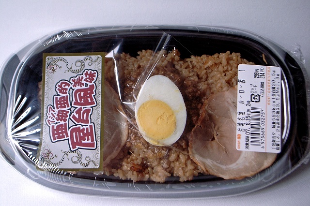 台湾風 ルーロー飯いつも行く地元の「99ショップ」最近、酒の販売も始まり益々、利用価値がアップ!!これに合わせるかのようにつまみも充実してきました。22時近くになるとお弁当、おにぎりなどが半額になりお客さんもこれに合わせるかのように激増します。そんなお店でこんなお弁当が眼を引きました。「亜細亜的屋台風美味」「台湾名物ルーロー飯」なんともインパクトのあるネーミング、つい手が出てしまいます。大した期待はしていなかったのですが味は台湾で食べたお弁当にかなり近いものでした。スパイスも同じようなものを使っているようです。挽肉の味付けも素晴らしく炊き込みご飯とのマッチングは素晴らしいものがありました。チャーシューも温めると直接火であぶったような食感と味に変化しました。他のお弁当に比べ具が少ないもののストレートに台湾を感じさせるこの味は値段以上の価値ありと見ました。