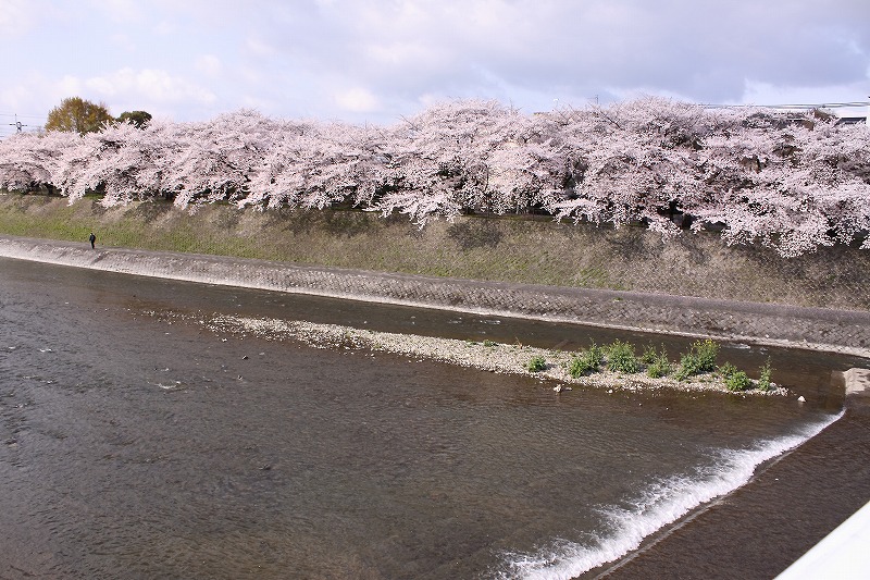 京都の桜 鴨川塩小路橋 鴨川塩小路橋付近 新幹線で名古屋方向から京都駅に着く寸前、鴨川を渡ります。その一瞬、護岸に白い帯状の桜の並木が見えてきます。私は市バスでこの付近を走っていてあまりにも見事さに途中下車して撮影に向かいました。 続 き