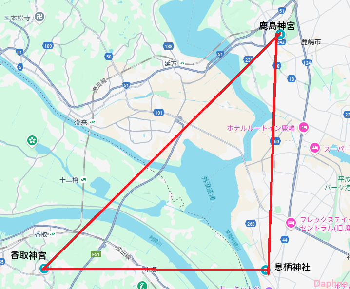 真夏の東国三社巡り~香取神宮・鹿島神宮・息栖神社~ うだるような暑さの中、以前からずっと行きたかった「東国三社巡り」に出かけたときの話。香取神宮・鹿島神宮・息栖(いきす)神社――関東屈指のパワースポットと言われるこの三社は、それぞれに独特の雰囲気があって、訪れるだけで気持ちが引き締まるような不思議な感覚があります。夏だからこそ澄んだ空や水場の雰囲気がよかったです。🌻東国三社巡り🌻⛩️鹿島神宮(茨城県鹿嶋市)Googleマップ📍⛩️息栖神社(茨城県神栖市)Googleマップ📍⛩️香取神宮(千葉県香取市)Googleマップ📍東国三社の位置関係を地図で見ると、ほぼ二等辺三角形になっており、強力なパワースポットとして知られています。それぞれの神社が持つ歴史や、三角形の配置から生じるエネルギーが訪れる人々に様々な利益をもたらすと言われています。今回は上記の順番で車でまわりました。🌸1社目:鹿島神宮(茨城県鹿嶋市)まず訪れたのは、武道の神様として知られる「鹿島神宮」。主祭神は武甕槌大神(たけみかづちのおおかみ)。日本建国に深く関わった神様で、勝負運・仕事運アップにご利益があるとされています。参道から約300mほど歩くと、奥宮へ。徳川家康公が関が原で勝利を収めたお礼として奉納した社殿です。境内には神秘的な「御手洗池」や、「要石」という地震を鎮める力を持つと言われる石もあり、静かな空気の中で自然と背筋が伸びるような感覚でした。【ランキング1位獲得】御朱印帳 大判 かわいい 翡翠花吹雪 金襴 おしゃれ 京都ちせん 蛇腹 式 寺 神社 巡り や 旅行 にも 金襴 生地 が 高級 感 のある一冊。和紙 選べる サイズ 縦 18 × 横 12 cm 花柄 お出かけ 朱印帳 ご朱印帳 ランキング楽天で購入🌸2社目:息栖神社(茨城県神栖市)続いて立ち寄ったのは、ちょっと静かな佇まいの「息栖神社」。こちらの主祭神は久那戸神(くなどのかみ)で、航海の安全や道開き、縁結びにもご利益があると言われています。境内の入り口にある「忍潮井(おしおい)」という井戸が有名。静かで素朴な雰囲気が心地よかったです。参拝後、オガタマの木でパワーをもらいました。🌸3社目:香取神宮(千葉県香取市)最後に向かったのは、武神である経津主大神(ふつぬしのおおかみ)を祀る「香取神宮」。物事を良い方向へ導いてくださる(かじを取る)神様として御神徳があります。目にもあざやかな朱塗の楼門は、元禄13年(1700)、本殿と共に建造されました。漆黒塗りの御殿は珍しいですね。香取神宮は現在は修繕しているそうなので、行かれる方は確認してみてください。三社を参拝してお守りが完成しました。自宅に大事に保管しています😊