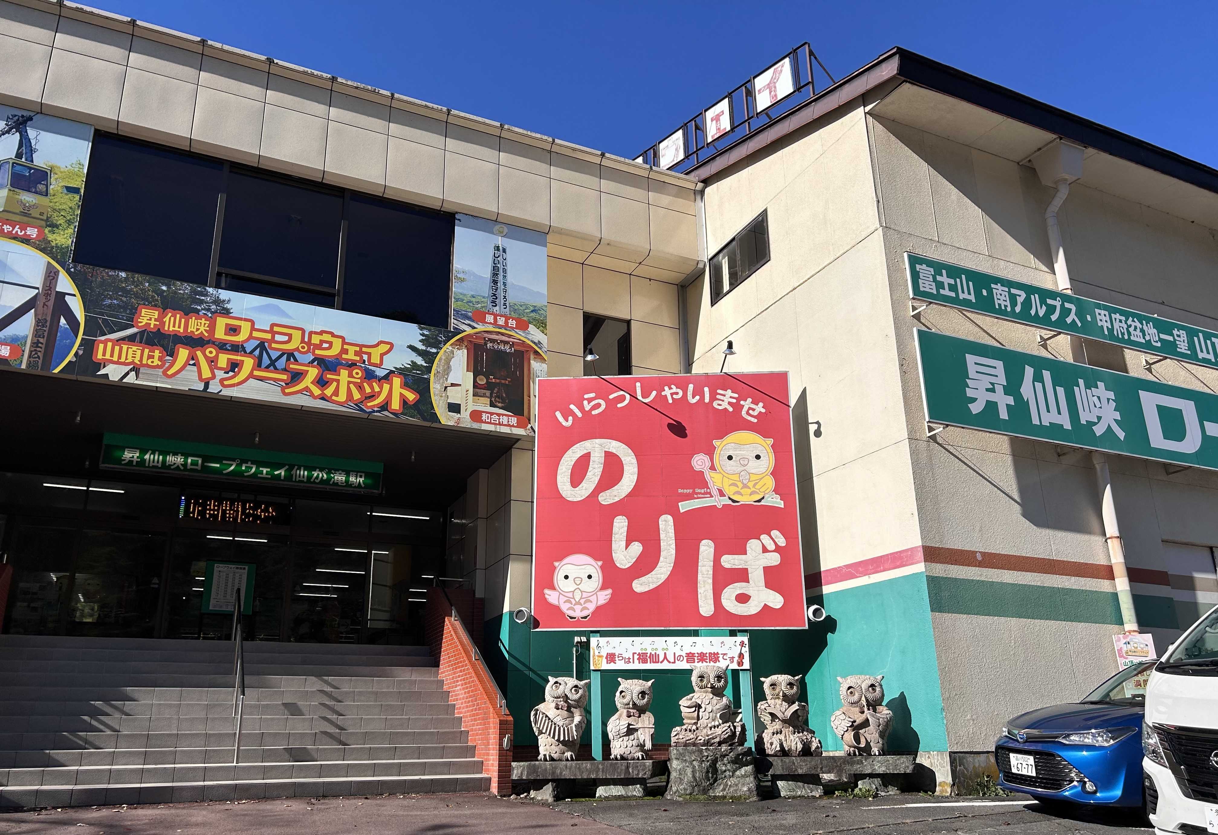 無料駐車場に停め、ウォーキング兼ねて歩いて向かいます。駐車場から昇仙峡までハイエースでの送迎もやってました(有料ですが)。