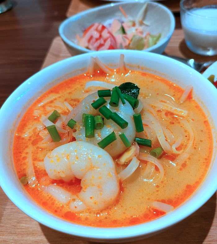 タイになかなかいけない時にはタイ料理が食べたくなります本場タイ人の作るタイ料理を食べにいく店は・・・宜野湾市にある『ベンシャロン』タイの高級食器のベンシャロン焼きから来ていますポンは『トムヤムヌードル&ガパゥライス』セットアイスコーヒーも付きますよ店内は清潔感溢れ、接客も丁寧で気持ちの良いタイレストランです『タイ人の辛さでお願いします・・・』と告げる海老が2尾、そしてクィッテオ(米麺)レモングラスの香りがいい感じミヤさんは『カオマンガイ』をchoiceカオマンガイにかけるソース(ナムチュム)はそれ程辛くはありません唐辛子(プリック)が沢山入り辛くていい感じです口直しのデザートは『タピオカ入りのココナッツミルク味』です毎日でも食べたい『タイ料理ランチ』でしたいつもいつも見て戴きありがとうございます!ブログリンクに参加しています。ポチッ!とお願い致します!B級グルメランキング放浪記ランキングおうちごはんランキングタイ旅行ランキング