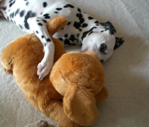 今日はいつもより早めにお散歩に行きました。夕方の人通りが多い時間帯車からの視線や通行人を気にかけながら歩いていると近所の人なども話しかけてきます。下校途中の生徒さん達からも「あ、ダルメシアン」とか「101匹わんちゃん」と声が聞こえてきます。早めのお散歩だったのでいつもより長くお散歩しました。最初は自転車で散歩してみようとしたのですがうまくりりをコントロール出来ません。りりも車輪が恐い様子。急きょ引き返して、自転車を置いていつものように徒歩で散歩です。 明日はまた雨の予報「ねえ。りり、何して遊ぶ?・・・」