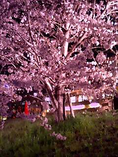 この前の奥さんとの夜桜デートの時の画像です^^;最近の携帯の画像ってかなり綺麗に撮れるんやねぇ~~~明るいのはこの桜の前の家がガレージで宴会してて自分ちから電気を引っ張って勝手にライトアップしてたからです。続いて...。ハイ...年甲斐もなく2人でパチリです (;^_^A アセアセ