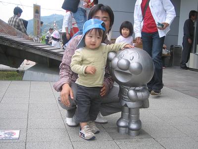 今日は、高知県のアンパンマンミュージアム(やなせたかし記念館)と龍馬歴史館に行ってきました。アンパンマンミュージアムはではどの子供達も「アンパンマン!アンパンマン!」と入り口付近から連呼。ミュージアムでは大きなキャンバスに描かれたアンパンマンやドキンちゃん等それぞれがお気に入りのキャラクターと記念撮影をしていました。子供の頃、テレビでアンパンマンを見ていた訳もなくキャラクターもののなかで特に好きでも嫌いでもないのだけれどミュージアムに展示されている絵は魅力的だと思いました。今日みたいにゴールデンウイークで混雑している日じゃなく空いている日にゆっくり見たいな。龍馬歴史館は龍馬好きの旦那ちゃんのリクエスト。蝋人形が沢山置いてあって事ある毎の龍馬や事件に関係した人が表現されています。結構怖い。もっと日本史を勉強してればもっと楽しめたなぁ、なんて。鯉を見て「おいしそ~~~」と云った王子池の横にある、プンポです