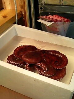 この日の定例練習の帰りのこと。自宅最寄駅すぐのところにある某たこ焼き店にて、たこ焼き1人前を注文.................した私のすぐ横に.........うおっ! (〇△〇;) !!たっ.....タコ...........材料じゃん.........それも丸ごと1匹...............しかも何故にお店のカウンターの中じゃなくて、カウンターの外に???思い切りお客サイドに?????(;-_-;) ウームわからん......(汗)