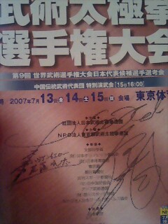 東京滞在の第一目的は、もちろん全日本選手権大会出場だったわけですが、今年は大会終了後にも大きな目的が。<注>あくまでも第一目的は「大会」です。それは。この日に新宿にて行なわれたあるイベント。2007.7.17 tue at.LOFT PLUS ONE http://www.loft-prj.co.jp/PLUSONE/ 単なる飲み会 vol.1 「酒井裕二郎」 贅肉と筋肉。いや違う! 忍風と百獣。いや違う! 男前と男前。いや違う! トークライブ。いや違う! 「単なる飲み会 vol.1」です! 【出演】酒井一圭、白川裕二郎 【乱入】西岡竜一朗、笠原紳司、レイパー佐藤、他豪華乱入者!? Open18:30/Start19:30 一般人がこの告知を見ても「なんのこっちゃい」と言いそうなイベントなんですが......“大きなお友達”もとい大人になっても特撮ファン!にはたまらないイベントなのであります。首謀者もとい出演の酒井一圭氏は、『2007/05/23(水) 鋼の猛牛、退院。』でもおなじみ(?)の、『百獣戦隊ガオレンジャー』の鋼の猛牛・ガオブラックこと牛込草太郎役。そして、白川裕二郎氏は、『忍風戦隊ハリケンジャー』のゴウライジャー・カブトライジャー霞一甲役。元々は綱の富士というしこ名で序二段まで行っていたが、ケガのため大相撲を引退した。というイケメンな見た目からは想像がつかない経歴の持ち主。乱入者(←よく考えたらすごい表現じゃないですかこれ?w)も、上記のような告知であらかじめわかっていただけでも豪華なのに......当日行ってみたら、更に乱入者が来てまして、特撮ファン---特に平成戦隊ファン---にとっては思わずワクワクしちゃうようなラインナップに......。西岡竜一朗氏は、1999年度放送の『救急戦隊ゴーゴーファイブ』のゴーレッド=巽纏(マトイ)役ですし、笠原紳司氏は、わがお気に入りの『未来戦隊タイムレンジャー』のタイムファイヤー=滝沢直人役。レイパー佐藤氏は、物まね芸人としても知られておりますが、実は酒井氏主演の“日本一出演ハードルの高い自主制作映画”である、あの『クラッシャーカズヨシ』の監督でもあったりして。それのみならず。事務所に内緒で(汗)、クラッシャーカズヨシつながりの友情出演で来たらしい方が約2名。1名は前出のカ○ト○イジ○ャーの弟君..........なんですが........事務所に内緒なので実名はつつしんで伏せさせていただきます。で、もう1名、誰が「事務所に内緒」だったのか忘れてしまったので(汗)、作品名列挙にて。酒井氏同様ガオレンジャーからは、役でも実生活でも仲良し(!)の怒涛の鮫・ガオブルーこと鮫津海役の柴木丈瑠くん、『忍風戦隊ハリケンジャー』からもう1名、特撮マニア日記風に書くと「忍風黄」くん、『轟轟戦隊ボウケンジャー』から「冒険黒」くん、...といった具合に......。酒井氏と白川氏の2名がまず身長180センチ強なので、「長身のイケメン」というだけでもインパクトがあるのに、タイプはいろいろにしろ「イケメンヒーロー」がステージに鎮座してお酒を飲みながら(←だってイベントの趣旨が「単なる飲み会」ですから)100%フリートーク、というのは壮観ですじゃ(ひゃー)。イベントタイトルが「飲み会」で、イベント開始は夜7時半、場所が新宿歌舞伎町、とくればこれはもう「お子様禁止」のイベントであります(笑)。にも関わらず、小学生のお子さんをお連れの方がいらして、イベント終盤で酒井氏に「子供は連れてくんなって!」と叱られておりましたが...(^^;)っていうか、今年2月初旬に終わったばかりの「ほとんど現役ブラック」が来ていたので、その小学生たちの夢は「かーなーりー壊された」気がしないでもないのですが......(汗)。素面の役者さんたちの「お芝居を見に行った」とか「某イベントに来ていたのに遭遇して握手してもらった」というのは、はるか記憶の彼方になるほど以前にあった経験なのですが、こういう「大人のファンを呼んでのトークイベント」に参加するのは初めてで、いやもうたっぷりと笑わせていただきました。こう言ってはなんだけど、本職のお笑い芸人さんたちよりある意味むちゃくちゃ面白かったですわぁwww途中のトイレ休憩w時間では、マトイ兄ちゃんこと西岡氏と忍風黄の山本氏のサインをゲットするのに成功☆☆☆タイムレンジャー派の私としては、笠原氏のサインもゲットしたかったのですが、トークの最中に“後輩がやる舞台公演のチラシを配る”という行為が私の目の前で私の隣の人に対して繰り広げられたので、すぐ斜め横で立って話す姿を見ることができたくらいでした。(とはいえ、手を伸ばさなくても届く超至近距離。椅子に座ったまま普通に見上げればいいだけの話だったw)んで。白川氏が「あい・らぶ・MY筋肉・ザ・ベスト!!!」だということがトークで判明して、ワタクシ大笑いで悶絶wwwwwビリーにもやっぱり(?)入隊しているとかwwwそんな白川くんから実はワタクシ、ある「イイコト」をしていただきまして(≧m≦)ムフ.....などと書くと変なことに聞こえますが......この日のイベント参加者で「会場から一番遠いところに現住所がある人間」