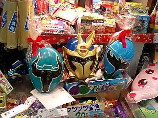 8月19日(日)の『24時間テレビ』神戸会場イベントステージでの表演用に音楽CDを作成しないと......と思ったら、自宅の録音用CD-Rのストックが見事に切れておりました。最初から10枚セットをひとつしか買ってなかったしねぇ.......そういえばその10枚セット買ったの去年の9月だもんなぁ.....気が付けば約1年か.........などと言っている場合ではなく、録音用のCD-Rを買いに行かないと...というわけで、某大型家電量販店へと「毎度のことですが珍しく外出」したのでありますが。『2007/03/02(金) ぷぷぷぷぷぷぷw & 泣く泣くのお買い物。゚(゚ノД`゚)゚。 』で遭遇した「なぜかひらがなの但し書き付きアニメ特撮キャラクターお面」が展示されている「駄菓子&大阪おみやげグッズ?」ショップが通り道にあるので、通りすがるついでに何となくお店に目をやると.........:゙;`゙;`;:゙;`;:゙`;:゙;`ヽ(゚∀゚ゞ)ブッこっ、こりゃまた現役さん(=ゲキレンジャー)ではなく、OBOGさんではないですかっ!マジグリーン、マジブルー、マジシャインぢゃん.......なぜにマジレンジャーが.........去年ってたしかボウケンジャーだったから.....それより前だもんねぇ。↑10数年のブランク持ちなので、放送年を暗記していない戦隊があったり(汗)。売れ残りで放置状態なレイアウトで売りに出されております。かつて地球を守ったツワモノ共も、放送が終われば一般世間ではそんな扱いなのよねぇ~(悲)というわけですな。しかし。ワタクシがウケたのは実は、この売れ残りのマジレンお面ではなく........この売れ残りのお面たちを日記のネタにすべく携帯カメラで撮影していたワタシの背後から聞こえてきた「な~? スーパーゲキレッドださいやろ???」という男性の声(笑)。思わず振り返ると、パッと見て20代後半~30歳は行ってそうな?男性2人組が、例の「ひらがな但し書き付きで展示されているスーパーゲキレンジャー(=ゲキレンジャーのパワーアップモード)のお面」を見上げながら会話をしているではありませんか。おおうっと、知らない方とはいえ「大きなお友達」仲間ですか(汗)。仮面ライダー電王のお面もありましたが、戦闘モード...それもガンフォーム(リュウタロス)やロッドフォーム(ウラタロス)はあるけど、ソードフォーム(モモタロス)ないぢゃん......と不満に思いwっていうか、モモタロスそのもののお面を置いてちょうだいっっっ!!!...などとアホーな心の声を一瞬発しつつ、本来の目的遂行のために某大型家電量販店へとふたたび向かったのでありましたとさ(笑)。