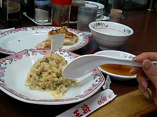 この日の午後の定例練習の帰りに、「チャーハンを食べて帰ろう」ということになり、某生徒1名と一緒にチャーハンを食べられる場所を探しました。さて、何でまたわざわざ「チャーハン」なのか、と。某チェーン店に入り、チャーハン定食を注文したものの、お子様ランチのチキンライスではないので、最初からライスの上に旗は立っておりません。この「旗」が重要なポイント!!!しかし。そのお店には、ライスに差して立てる旗なぞ用意しているはずもないので、割り箸が入っていた袋をお子様ランチ旗くらいの大きさにちぎり、チャーハンのてっぺんに差した爪楊枝にかぶせて.........これで一応、「旗だ!」と言い切ればそう見えなくもない(笑)ので、あとは旗が倒れるまで食べるのみ!(`・ω・)ムン!どれだけ旗を倒さずに食べつくせるかが勝負です。「残念ながら旗が倒れてしまった」あかつきには、「オゥノーーーーーーーーゥ!!!」という、手の甲をほっぺの方に向けてショックを受ける、あの仕草をしましょうwはいそうですwわかる方にはもうおわかりですね。石丸謙二郎さん演じる、『仮面ライダー電王』の時をかける電車・デンライナーのオーナーの食べ方です(笑)。というわけで、この日の余興.......じゃなかった、夕食は「デンライナーオーナーごっこ」で楽しんだ大きいお友達2名様なのでありましたとさwww