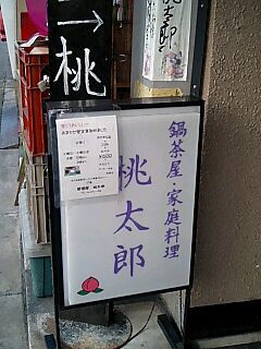 いま現在ワタクシが棲息している地点には、ミレニアムの1年前に引っ越してまいりました。ですから、自宅の近所についてはほぼ100%?把握していそうな錯覚を持っているものですが.....ええ、人間というものは得てしてそういう錯覚を起こしがちなのですが......23日(木)の夜に、日ごろ通過している自宅近所にふと、ある看板を発見。いえ、もっと正確に言えば「いつも目にしていたはずなのに、そこに書かれた文字を改めて認識しなおした」のです。その看板には、「桃太郎」の文字が........もっ、桃太郎ォ........???( ゜ ▽ ゜ ;) ( ゜ ▽ ゜ ;) ( ゜ ▽ ゜ ;)桃太郎といえば、電王ファンにとっては「モモタロス」ぢゃーーーーーーん!!!(爆)(※キャラクター設定では、「モモタロスのモデルは桃太郎に出てくる赤鬼」ということになっておりますゆえ)しっ、しかもこの看板「鍋茶屋」とか書いてあるし......もしかして鍋の材料は亀(ウラタロス)とか熊(キンタロス)とか......???ただちにそんなアホーな脳内変換が私の脳裏を駆け巡ります。んでもって店主がモモタロスで客が来ると、「いらっしゃいませぇ!!!」とドスの利いた声で凄むからお客さんビックリ!!!(電王第17話より)とかw......ホントにそうだったら面白いんだけどなぁ.......(遠い目)いやはやしかし、前回の「まんが喫茶 いまじん(『2007/08/08(水) んがっっっ!!!』)」といい、この居酒屋「桃太郎」といい.......うちの近所はイマジンだらけだな..........(・ω・ )))))))
