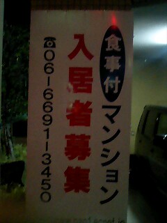 『2007/12/13(木) いちおう何とか年内だけは...... 』の、某官公庁での単発入力仕事に行きだして稼動3日目のこの日。ある建物を探すべく、退勤途中に違う駅で下車し、日の入りが早くなったためにすでに暗くなっていた道をトコトコと歩いていた私の目に飛び込んできたものは.............んっ?!し...........食事付き???何??????(・ω・)??(・ω・)??(・ω・)?マンション入り口の方に回ってみると、確かに「食事付きマンション入居者募集」と書いてあります。「朝食夕食付きで1ヶ月89,000円~」だそうです。学生さんやシニア向けのサービスなんでしょうかね?そんな感じの表記はされておりますが......。こういう物件もあるんですねぇ........。