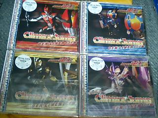 暮れも押し迫ったこの日........じゃなくって、本来は翌日の19日(水)が発売日として設定されているのですが、オリコンラキングのためのカウントの関係上、どのレーベルもショップもフライングで前日に発売となったこの18日(火)に、CDショップ店頭に並びました!仮面ライダー電王OP主題歌『Climax Jump』のタロスズ(モモタロス・ウラタロス・キンタロス・リュウタロス)ボーカル版による、『Climax Jump DEN-LINER form』初回盤がっ!!!発売する前に、SMAPの新曲も同日発売だと知り「さては.....タロス達に1位を取らせまいとしてるな!」と内心地団駄を踏んでいたのですが、重なってしまった以上、第1位は無理としても、どこまで健闘できるかが非常に気になるところではあります。何せ、この『DEN-LINER form』もとい『へっぴり腰フォーム』が電王本放送中の最後のキャラクターソングCDになるはず。『Perfect ACTION』や『Action ZERO』でベスト3圏内で健闘できることが証明されているだけに、電王ファンとしては「夢のオリコン第1位」を狙いたいわけでして......。んで。この日の単発の入力仕事からの退勤途上に、「あれ、そういえば明日ってクラジャンへっぴり腰フォームの発売日じゃ.......いや!フライングで今日(18日)かっ!?」と思い出し、初回限定盤が並んでいる光景を見ようと某大手CDショップへと。ええ、見に行ったんです。「見に行った」はずなんですが.......並んでる初回限定盤の数の少なさを目にしてしまい........しばし悩んだ挙句.............4枚コンプリートしてしまいました.......orzうう.....血迷った.......orz今の身分でするべき行動じゃないだろうに.....orzでも店頭で入手しないと、初回限定盤だから、のちのちヤフオクなんかで高値で買えない...なんてことになる可能性かーなーり!大だし......orzずっとずっと電王グッズ、ひたすら我慢してきてるし..........orz愛しのタロス達のためにランキングに貢献したいし.........orzどうせ死ぬなら、タロス達を道連れに..... ←オイ........というわけで、やってしまいました。最初で最後の電王散財.........(((`;ω;´)))ウググググググググえっ?なんで「へっぴり腰フォーム」かって?それは、本編を見るとわかります。私は最終戦闘形態ライナー(Liner)フォームを、演者高岩成二さんの「へっぴり腰」のすばらしさ(←変身前の良太郎(さとうたける)に完全に見えてしまうその演技力のすごさ!)にちなんで、わざと「へっぴり腰フォーム」と呼んでいるのれす。私なりの最上級の褒め言葉なのでありまする。