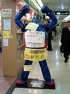 『2007/12/07(金) 結局やっぱり小心者。』の帰り道。大阪駅前ビルの地下にて、こんなものを発見。なんだか看板代わりになってるぞーーーーーーー鉄人~~~www