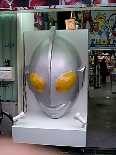 この日の午後、日本橋でんでんタウンの某所にて遭遇。でかっ!!!!!顔だけなのにかーなーりデカいぞ........私は基本的に「東映等身大ヒーロー」派なので、ウルトラマンはどちらかというと興味の対象外なのですが........このデカさは一応ネタかしら?と、ついつい撮影してみたり.........ハッ!!!☆☆☆(・ω・)☆☆☆まさか等身大の頭の大きさなのかっっっ?!?!?!?!?!(´゚艸゚)∴ブッ