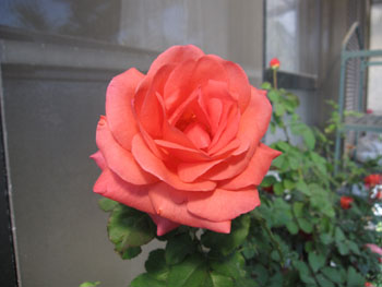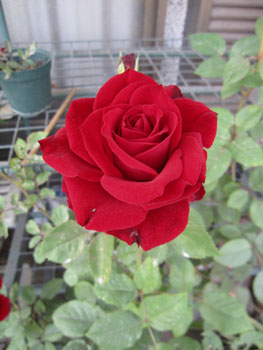 パレスシリーズの赤バラ花の大きさはシュワルツマドンナより大きい(笑)樹高は50センチくらいで、全体のバランスがよくて好きです。マドンナさまは背が高くて、お花があまりよく見えないもんね(笑)ベビーロマンティカこのバラはうちでは春と晩秋しかマトモな花が咲かないな~。暑いのは苦手なのかしら。挿し木のベビーロマンティカ樹高10センチくらいで咲いてます。可愛い(笑)でもいつ挿したのか覚えてません。葉っぱが汚れてますね~。火山灰か黄砂かのどちらか。ちなみに。ベビーロマンティカはフロリバンダ、パレスシリーズの赤バラはミニバラなんですよね。花径は比べ物にならないくらい赤の方が大きいです。