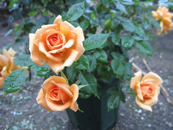 長らく放置してしまいました~。花の写真とかはたまに撮ってたので画像は溜まる一方で。(でも画像を小さく処理するのが面倒で…)この夏は天気が不安定で、晴れててもにわかに雨雲が広がって土砂降りになることが多くて。ほとんど庭仕事してませんでした。庭は草ボーボー。バラは虫食いだらけ。よく見るとアブラムシが大量発生してる~~。こりゃいかんと思って、今日は活力剤散布したり、オルトラン撒いたり、あと肥料も少し。でも途中でなぜかお腹がゴロゴロ。今日は珍しく一日中晴れだったので、いつもの雷の代わり?酷いピーピーで真っ青になりながら、なんとか庭仕事やりました。だって明日はまた雨だっていうし。画像はいつのか分かりませんけど…ショボイ夏バラです(お手入れしてないので悲惨)ヴィヴァーチェシャルトルーズドゥパルムこれもヴィヴァーチェカタルーニャFカタルーニャは夏には結構強いですね。セゴビアこれもセゴビアチュチュオプティマこれもチュチュ