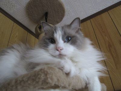 雨があまり降らなくなったと思ったら、今度は降灰です(涙)ここ数日風向きが東向きになってきて、鹿児島市街地方面に桜島の灰が降ります。気温も連日34度くらいなのに、窓もあまり開けられないし。厳し~夏です。ところで。梅雨時にレオのキャットタワーの柱に巻いてある麻紐に今年もカビが発生。さすがに2年連続で、レオの体にも悪いと思ってキャットタワーを買い替えることにしました。それが先週届いて、設置したのですが…。せっかく2つも購入してドッキングさせて立派なものが出来たと喜んでいたのに…新品の匂いが気になるのかあまり乗ってくれません…。爪とぎに至っては全く使ってる気配ナシ。なんで~? あんなに好きな爪とぎだったのに。新しいものは爪とぎとして気付いてないような。そのうち使ってくれるのでしょうか?前のものは下の部分だけ残して(柱に巻いてあった麻紐は撤去して)居間のテレビの傍に置いてます。以前ブラウン管テレビだった頃、よく上に乗ってたのに、今は薄型で乗れなくなってしまったので代わりになればと思って。こちらはよく乗ってるんですよね~。匂いが安心するのかな。丁度窓際になるので外が見られますしね。夜、窓の網戸に虫が止まってるのが気になるみたいです。 [Pet館人気No4]《今だけ!50%OFF》【人気No1】【送料無料】キャットタワーランド天井突っ張り...価格:8,800円(税込、送料別)もうお気づきかもしれませんが。レオは毛刈りをされてます(笑)わたしら夫婦がテキトーにカットしたので大変ブサイクになってます(爆)本人(猫)はブサイクでも全然気にしてませんけどね(笑)