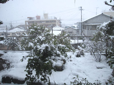 今朝起きたら銀世界でした~。今日は断続的に降ってます。昨日、わたしの実家で食事会をしたりして、バタバタしてたので、庭の鉢にマルチングしたり防寒対策をするのを忘れてて。今日起きてから、慌てて軒下や木の根元の雪があまり降らないところへ移動させました。結構雪が降ると滑って転んだりするんですけど、買ってそのままだったゴム長靴を初めて履いてみたら、凄く歩きやすくてよかったです。雪の積もったとこを歩いても雪が靴に入ってこないし、足も全然冷たくないし、あまり滑らないし。普段は歩き辛いゴム長靴が歩きやすく感じるなんて~、意外でした。さて、今日は大晦日。この一年、拙いシロウト園芸話にお付き合い頂きましてありがとうございました。皆様、よいお年をお迎えくださいね。