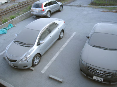 お久しぶりです~。1月は鹿児島にしては寒さが厳しかったんですけど、2月に入るとうって変わって暖かい日が多くなりました。なので2月はバラの冬のお手入れには絶好の気候だったんですが、暖かくなって気が緩んだのか自分が風邪をひいてしまって、10日間くらい安静にして引きこもってました…orz休眠していたバラも2月中旬あたりからすっかり目覚めたようで、既に芽が動き初めてます。いつもバレンタインデーの頃に剪定をするんですけど、今年は風邪で例年より一週間くらい剪定が遅くなってしまいました。ようやく…ようやく今日、最後まで残っていたバラの植え替えと剪定を終了しました。これでひと安心です…。ふう。でも鹿児島は暖かい風とともに桜島の灰が降ってきてるんですよね。今日の火山灰はご覧の通りです。近所の駐車場。うちのクルマも似たようなものです。連日のニュースで出ている新燃岳ほどではありませんけど、桜島も毎日噴火してます。どうも南九州の火山活動が活発になってるらしいのです。花も葉も灰をかぶって全然キレイじゃないので、園芸熱も上がりませんね~。画像は今咲いてるパンジーと水仙。灰かぶりです。白っぽいパンジーは灰が目立ちます…。ミニ水仙のティタティタ昨年開花したものを買ったんですけど、すぐ枯れてしまったのでそのまま放置してたんです。年末、鉢を整理しようと思って掘り起こしたら球根がゴロゴロ出てきたので、一応新しい土に植えてみました。この水仙は日本水仙と同じで早咲き品種なので、たとえ芽が出てもこの冬はもう咲かないだろうと思ってたんですけど、2月に入って葉が伸びてきて、気がつくと花が咲いてました。たった1輪ですけど、ちっちゃくて可愛い~(笑)今年は花が終わったら、ちゃんと肥料やって、次のシーズンに備えようと思います。