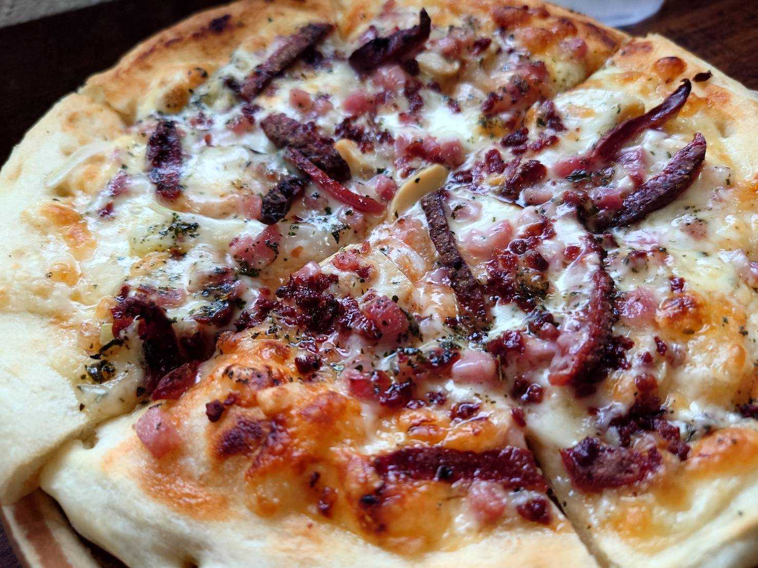そして北海道を名残惜しんで、2階のカフェではサッポロクラシックとソーセージ盛合せ、ピザを頂きました。