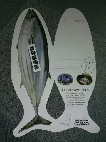 実家へ帰って早3ヵ月 戸籍も住民票も古巣に戻しました。 焼津に越してくると記念に頂けるハガキ… 大きさの比較対象はA4クリアファイル~ 一人ハトヤCMが出来ました。 商工会議所が町起こしの一環で作ってるらしいけど、普通に売ればいいのに~ 生まれ育った町でも(いや、生まれは違った)知らないことあるね。
