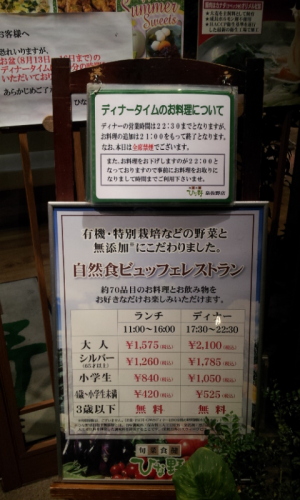 昨夜は、蕎原の「ほの字の里」から泉南イオンへ行き、帰りは泉佐野市上瓦屋の自然食ビュッフェレストラン(バイキング)の「ひな野 泉佐野店」へ久しぶりに行きました・・・ 混みそうな時間帯を避け、夜8時半頃行きましたが、案の定満員です・・・ 10分ほど待って、イザ食事へ・・・ バイキングは目一杯食べてしまいますので、注意しているのですが、またまた目一杯食べてしまいました・・・ 美味しいから悪いのです・・・ちゃうか?・・・ ホント美味しくいただきました・・・ スゴイですねェ・・・ここ2,3年「ひな野」を真似して、自然食バイキングの店がアチコチ出来ていますが、本家には足元にも及びません・・・ 簡単に真似されるほど、ノウハウが薄っぺらではありません・・・ 商売の鏡ですねェ・・・ やはり蓄積した「門外不出」のマル秘があるのは当たり前でしょう・・・ 昼のバイキングより600円高のディナーバイキングは、それ以上の価値がありました・・・ ※日本最安値!(年平均2回の利用で、近くにある必要はない) トランクルーム貝塚※貝塚市の不動産情報の総合サイト 貝塚不動産.comにほんブログ村 にほんブログ村にほんブログ村 大阪府 ブログランキングへ