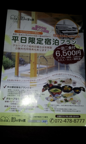 昨日は朝から仕事をして、前日の「クラゲ事件」にも懲りず、昼前から2,3時間またウインドをしました・・・ 結構風が吹いていましたので、握力の限界まで楽しんで、早い目に終了・・・もっと握力を鍛えなければ・・・ 夕方から、ウインドで疲れた身体を癒しに、貝塚市の最も山手にある、葛城山の麓の村の蕎原(そぶら)へ行きました・・・ 私の住む所から車で10分の、この地区の雰囲気は、昔とあまり変っていなくて、非常にのどかです・・・ とても大阪市内から1時間ほどの田舎とは、とても想像できません・・・ 都会から近いという事で、大阪市内から移住された人もいるそうです・・・ 実はここまでが私の出身の「貝塚三中」の校区ですので、知り合いが沢山います・・・ という事で、村内にある「温泉リゾート」、三中の後輩が支配人の「ほの字の里」へ行ってきました・・・ 久しぶりで、お盆という事もあり、結構混んでいました・・・何でも今期間限定の「一泊二食付6500円」のキャンペーンをやっているようです・・・ やはり山間なので、少し涼しく、空気もキレイです・・・今回は温泉に入りませんでしたが、ここの温泉は超お勧めです・・・都会の温泉とは違い、ほんとリラックスできます・・・そして、非常にクリーミーなソフトクリームを頂いて、蕎原を後にしました・・・※日本最安値!(年平均2回の利用で、近くにある必要はない) トランクルーム貝塚※貝塚市の不動産情報の総合サイト 貝塚不動産.comにほんブログ村 にほんブログ村にほんブログ村 大阪府 ブログランキングへ