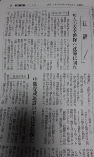 日本の尖閣諸島に対する中国の領有権を主張する反日デモが、北京上海など25か所で発生して、一部が暴徒化して日本料理店が壊される事態になっているようです・・・ 秋に中国・江南に旅行する予定でしたが、ちょっと身の危険を感じますので、キャンセルしました・・・ すでにツアー代金を全額振り込んでいますし、キャンセル料を取られそうです・・・ こんな「反日」の危険な国には、金を貰っても行きたくありません・・・ 命が大事ですし、世界中見渡せば、他に行きたい安全で魅力的な国が沢山あります・・・ しかし20年前に中国に行ったときは(商社の主張に同行)、まだまだ発展途上国で、日本を非常に尊敬していた雰囲気がありましたが・・・たった20年でこれほど変わってしまったとは驚きです・・・ いや中国や韓国とも、歴史的な背景や民族性を考えれば、元々ホンネの部分では日本をよく思っていないのは明らかですが・・・ 向こうが「日本は嫌い」と言っているのに、ワザワザこっちからシッポを振る必要もないでしょう・・・ という事で、今回の旅行は急遽マレーシアに変更しました・・・※日本最安値!(年平均2回の利用で、近くにある必要はない) トランクルーム貝塚※貝塚市の不動産情報の総合サイト 貝塚不動産.comにほんブログ村 にほんブログ村にほんブログ村 大阪府 ブログランキングへ