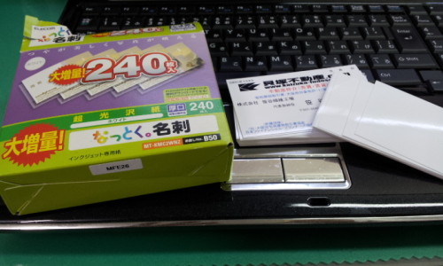 6年前から名刺を自作しています・・・ 織物時代はずっと印刷屋さんに「外注」していたのですが、トランクルームに転業してから、経費節減の為「何でも、自分でやろう!」というポリシーのもと、契約書などの書類関係も、自分で考え自分で作っています・・・ 日本初の「ロフト(棚)」さえ、最初の4,5室はプロの大工さんに頼んだものの、あとはすべて自作です・・・ 見学に来られたお客さんに「これ、私が作ったんです」と言うと、一様に驚かれると同時に、「愛着があるんですねェ・・・」と言われることが多いですねェ・・・ 「愛着・・・?」・・・当たり前です・・・先祖代々私の「本籍地」に建物が建ってますからと・・・会話が続きます・・・ しかし、印刷屋さんも大変ですねェ・・・ 私のように、家電店で「白紙の名刺」を買って、そのメーカーのソフトをインターネットで無料ダウンロードして作成する・・・中小零細企業の殆どがやっていると思います・・・ 中小零細にとって「1円でも」惜しいのです・・・その「心」「姿勢」が経営を左右します・・・大企業でも、公務員でもありませんから、誰も助けてくれないのです・・・ しかしこの6年間、名刺をよく配りました・・・1年で500枚・・・少なくとも累計3000枚は配っているはずです・・・ 昔、サントリーの名物社長の佐治敬三さんが、公私に関係なく、何処でも「サントリーを宜しく!」と言って名刺を配っているシーンを見たからです・・・ 売上1兆円を超える企業の社長がやっているのですから、零細企業のオッサンが、これくらいするのは当たり前でしょう・・・ 1年に最低1000枚くらいは配らないと、アカンでしょうねェ・・・ 昔の名刺と違て今は、「ホームページ、メールアドレス、携帯電話番号」も記載していますし、両面刷っていますので、宣伝効果は5倍あるはずです・・・ しかしプリンターも良くなりましたねェ・・・インクが5色から6色になり、プロの印刷屋さんも「真っ青」の格段に良くなった仕上がりになりました・・・※日本最安値!(年平均2回の利用で、近くにある必要はない) トランクルーム貝塚※貝塚市の不動産情報の総合サイト 貝塚不動産.comにほんブログ村 にほんブログ村にほんブログ村 大阪府 ブログランキングへ