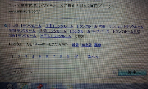 2,3日前ヤフーで「トランクルーム」というビッグワードで検索すると、1ページ目の上段に「トランクルーム貝塚」と、下段に「トランクルーム貝塚」と「貝塚トランクルーム」がありました(上位10位の上下に)・・・ 先月検索した時は、下段に「トランクルーム貝塚」がひとつあっただけでしたのに・・・ なんとも嬉しい限りです・・・ 無料で宣伝やって頂いて、効果絶大です・・・ いろんなSEO対策が功を奏していると思いますが、やはり「ブログの1日2回更新」が一番効いているのでしょう・・・ ホームページやブログの更新を頻繁にすると、ヒットする可能性が高いという「SEOの公式」をただ愚直に守っているだけですが・・・この誰でもわかっている「当たり前の事」すら、普通の人でもなかなか出来ないという事でしょう・・・ パソコンの詳しい小手先のテクニックは未だによく解りませんが、今後も愚直に、年の功であるブログのコンテンツの充実に力を注ぎたいと思います・・・ しかしある意味、弊社の屋号でブランド化した「トランクルーム貝塚」に、同業他社の2社がウマく便乗して、検索の上位に顔を覗かしています・・・ 「トランクルーム」という商売が世の中に存在するという意味でアピール効果もあり、相乗効果でむしろ歓迎しますし、逆に「マネをされた」事を誇りに思います・・・※日本最安値!(年平均2回の利用で、近くにある必要はない) トランクルーム貝塚※貝塚市の不動産情報の総合サイト 貝塚不動産.com※地域最安値!月額5250円岸和田市東ヶ丘町「月極駐車場」にほんブログ村 にほんブログ村にほんブログ村 大阪府 ブログランキングへ