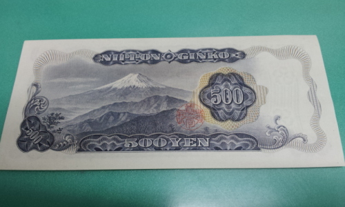 何故か?2,30年前から事務所の机に「旧500円札」の新札があるのです・・・ 500円札が500円硬貨に替わって久しいですが、小学生の頃はまだ、100円札、500円札で、100円や500円の硬貨はありませんでした(1日10円が小遣いの時代)・・・ 戦争直後からの高度成長期の真只中で、まだまだ物価が安くインフレの時代でしたが、1万円札なんかは殆ど見たこともありませんでした・・・ という事で、この500円札、親父が大事にしていたのかと思うのですが、500円が硬貨になって、何か「軽く」感じますが、札となると「重く」感じます・・・ よく「ワンコイン体験」とかいうプレゼンで、「たった500円で、体験できまっせ!」と言ってますねェ・・・ 「たとえ、500円でも、札と思って、大事にせよ!」と天国から言いたかったのでしょう・・・※日本最安値!(年平均2回の利用で、近くにある必要はない) トランクルーム貝塚※貝塚市の不動産情報の総合サイト 貝塚不動産.com※地域最安値!月額5250円岸和田市東ヶ丘町「月極駐車場」にほんブログ村 にほんブログ村にほんブログ村 大阪府 ブログランキングへ
