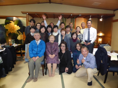 昨日は貝塚新地の料亭「この木」で、卒業してから45年ぶりに貝塚市立木島小学校6年3組のクラス会(昭和44年卒)でした・・・10月の地元のだんじり祭りで、約40年ぶりにクラスメートと会ったのがキッカケです・・・彼は長い間地元を離れていて、三ツ松保育所から貝塚三中までずっと一緒だった私と会った事によって、更に郷愁の想いが募ったのでしょう・・・担任の先生が、87歳という高齢にも拘らずまだ健在だったという事もクラス会を後押ししました・・・その日に、彼とクラス会の約束をしました・・・正直、小学校卒業してから45年も経っていますので、何人集まるか全く予想がつきませんでしたが、「最悪、ワイら2,3人でもやろかい!」と言って別れました・・・大阪市内に住んでいる彼との硬い約束で、私が男子の幹事になり、女子は地元に住んでいるクラスメートにお願いしました・・・その日から2人で手分けして、卒業文集に載っている名簿を頼りに探しまくりました・・・スマホの無料のLINEの電話とメールで、ほぼ毎日仕事の合間を縫って、まるで恋人のように連絡を取り合いました・・・(笑)文明に利器であるLINEを大いに活用しました・・・クラスメートの多くは地元貝塚市を中心に、岸和田、熊取、泉佐野といった近隣に住んでいましたので、割と楽に連絡がつきました・・・しかしただ何人かは、残念ながら全く手がかりがありませんでした・・・今後のクラス会もありますので、残された唯一の希望はこの私のブログです・・・本人か関係者が見る事に望みを託します・・・そして、クラス会には、ナント!42人中20人も集まってくれました・・・集まったみんなは「とにかく先生に会いたい!懐かしのみんなと会いたい!」一心だったと思います・・・木島小学校5,6年の2年間は、私にとっても余りにも思い出深い年でした、大袈裟ではなく私の人生を大きく左右したのでした・・・それだけに、先生に会って直接「本当に感謝しています。有難うございました!」と言いたかったのでした・・・それを言わないと私の人生に悔いが残ります・・・まァ、しかし、盛り上がりましたねェ・・・小学校5,6年同じクラスでしたが、殆んどのクラスメートが木島保育所から貝塚三中までの10年間一緒でしたから、同じ思い出を共有しているのです・・・昼前から始まり、夕方4時半まで「この木」で盛り上がり、2次会はカラオケ「まねきねこ」で夜の10時まで盛り上がりました・・・ほぼ半日、飲んで喋って歌って踊って?元気なオッサン、オバはん達でした・・・幹事の挨拶で「今日は、無制限1本勝負や!」と宣言してましたので・・・(笑)お蔭で、朝から喋り過ぎの歌い過ぎで喉がチョッと痛いです・・・そして、クラス会の名前を担任の先生の名前を取って「藤田会」と命名し、毎年クラス会をやろうと決めたのでした・・・今回をキッカケに名簿を作り、ハガキを出さずメールと電話で案内しますので、大幅に手間とコスト削減できる便利な時代になったものです・・・そして早速、忘年会をやろうという話になりましたが、結局新年会を1月にやる事になりました・・・クラス会発足の機会になり、最初の幹事としてみんなをハッピーにできた事が何よりです・・・1次会が終わって先生を家まで送って行ったのですが、「カラオケもお付き合いするよ・・・」という事で、2次会もお付き合いして頂いたのは、よっぽど嬉しかったのでしょう・・・という事で、これで老後の楽しみがひとつ増えたのでした・・・ここもポチッと押してください!ご協力お願いします!にほんブログ村 にほんブログ村にほんブログ村 大阪府 ブログランキングへ
