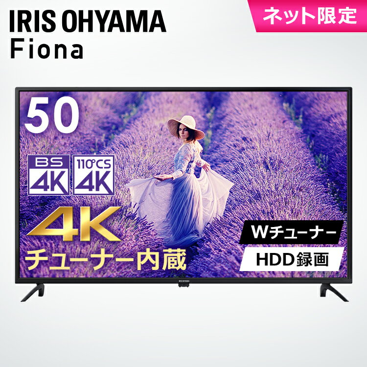 ≪最大1,500円OFFクーポン≫【衝撃価格】テレビ 50型 アイリスオーヤマ 4K対応 液晶テレビ 50インチ 50V ダブルチューナー 外付けHDD録画機能対応 地上波 BS CS 高画質 直下型LEDバックライト TV 4Kテレビ 4K液晶テレビ Wチューナー TV 液晶TV VAパネル Fiona 50UB10PC