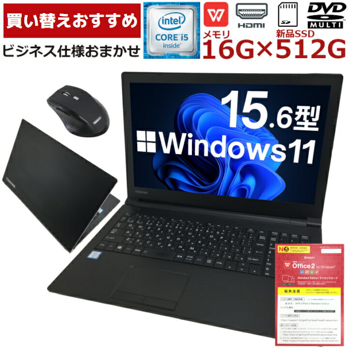 【買い替えおすすめ!】Windows11 中古パソコン 中古ノートパソコン 高速SSD 第6世代 i5 Office付 HDMI USB3.0 ビジネス仕様おまかせ 極速16Gメモリー 新品SSD 無線対応 中古動作良好品【送料無料】