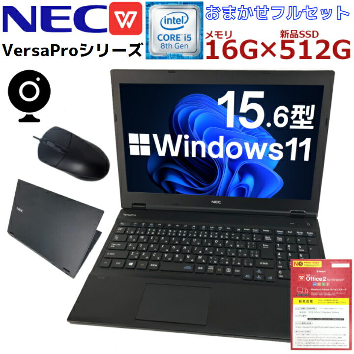 中古パソコン ノート 中古ノートパソコン Windows11 NEC VersaProシリーズ Webカメラ付フルセット 第八世代 Corei5 極速 16Gメモリー 軽量SSD Wifi対応 Office付 【あす楽】