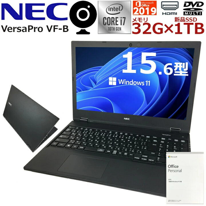 【第10世代Corei7×Windows11搭載】未使用品 中古パソコン ノート 中古ノートパソコン NEC VersaPro VF-B 新品SSD Microsoft Office付 スーパーマルチドライブ HDMI 内蔵Webカメラ 無線LAN Wifi対応 最新OS【送料無料】