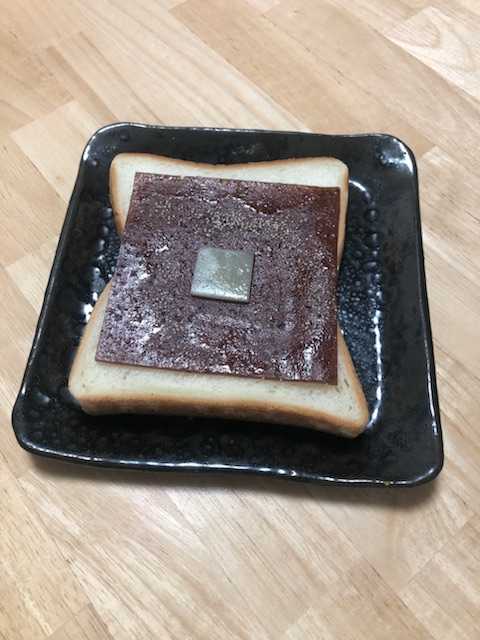 このうすーくきられたようかんを食パンに乗せて トースターでようかんがグツグツいうまで焼きます!