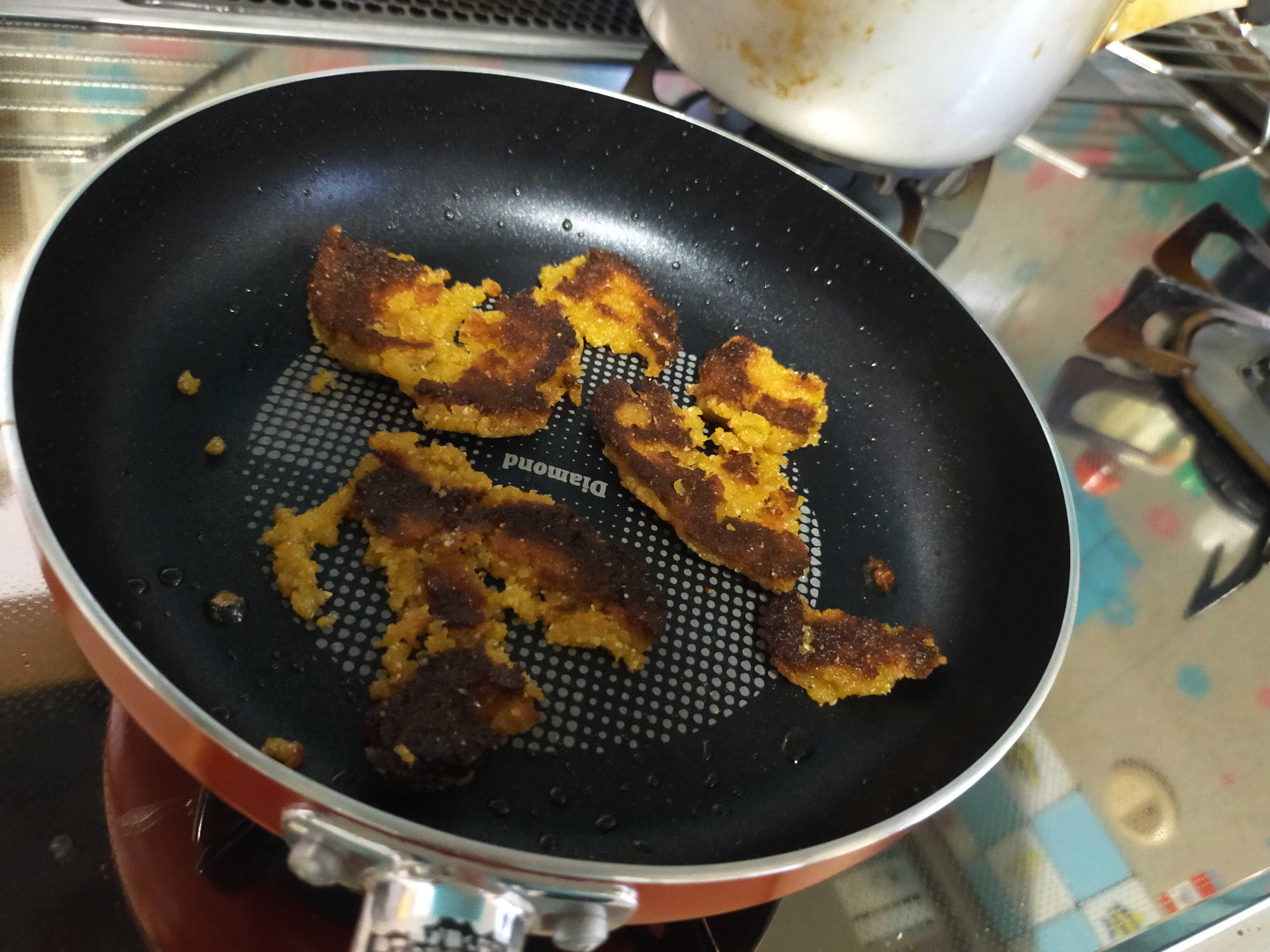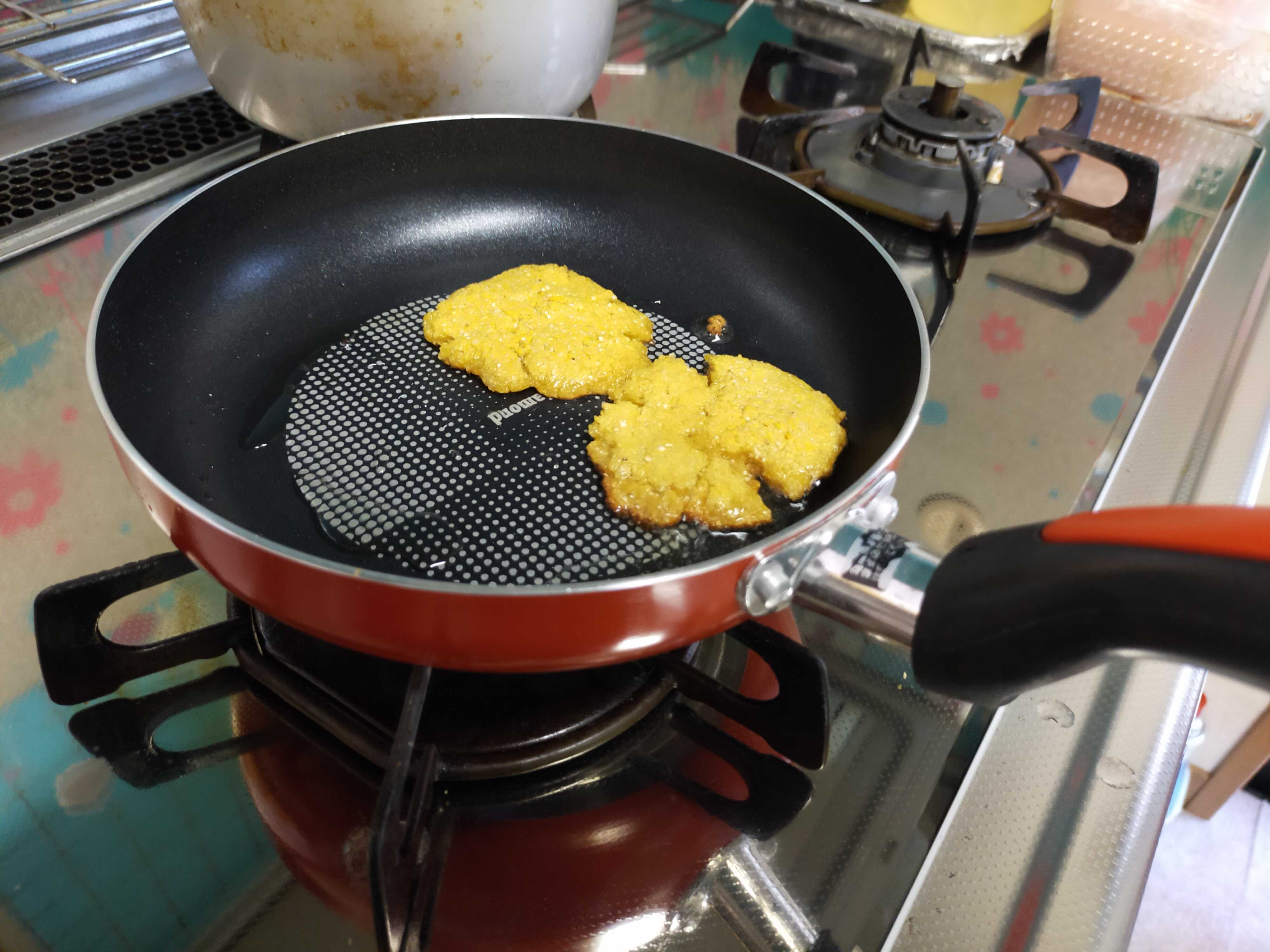 ボロボロで引き延ばせないから薄くして焼いてまふお♪