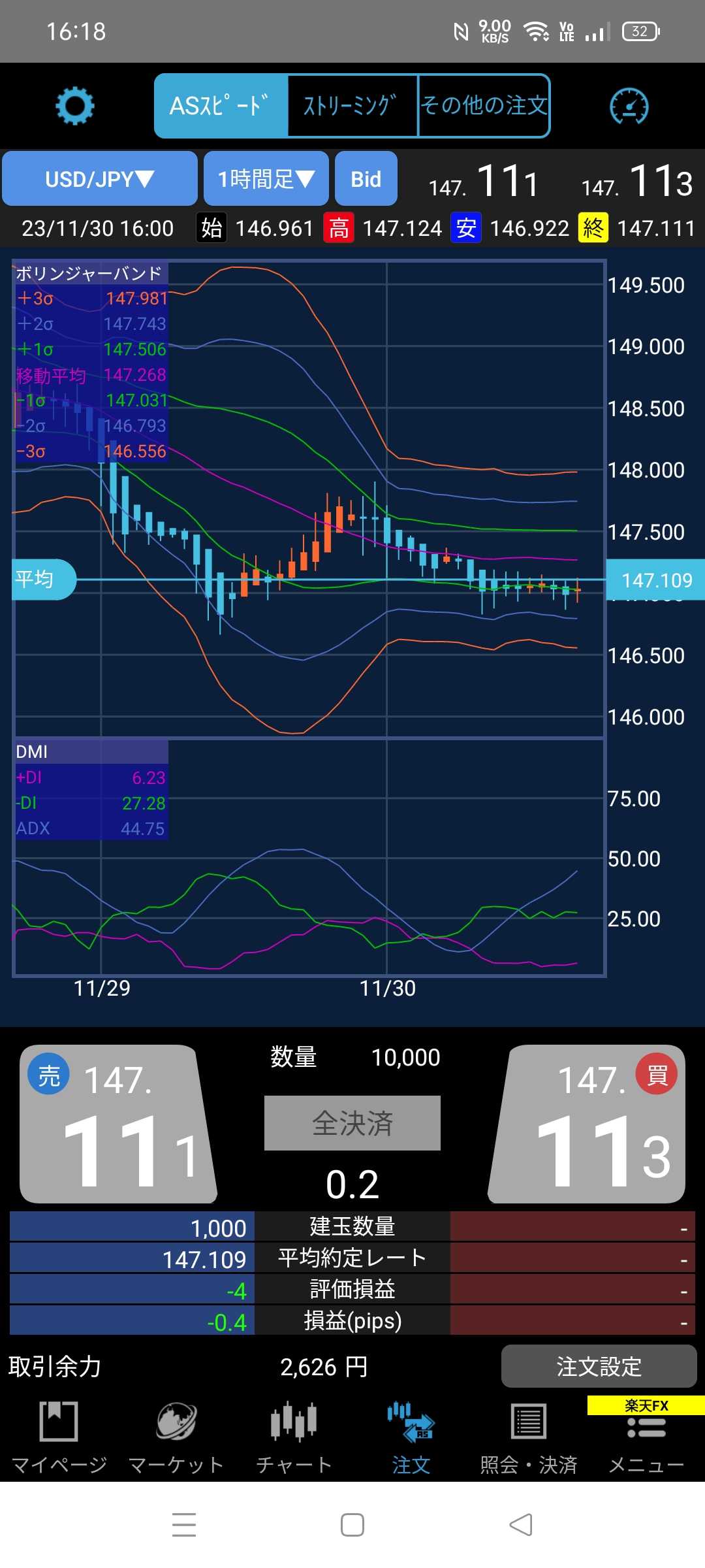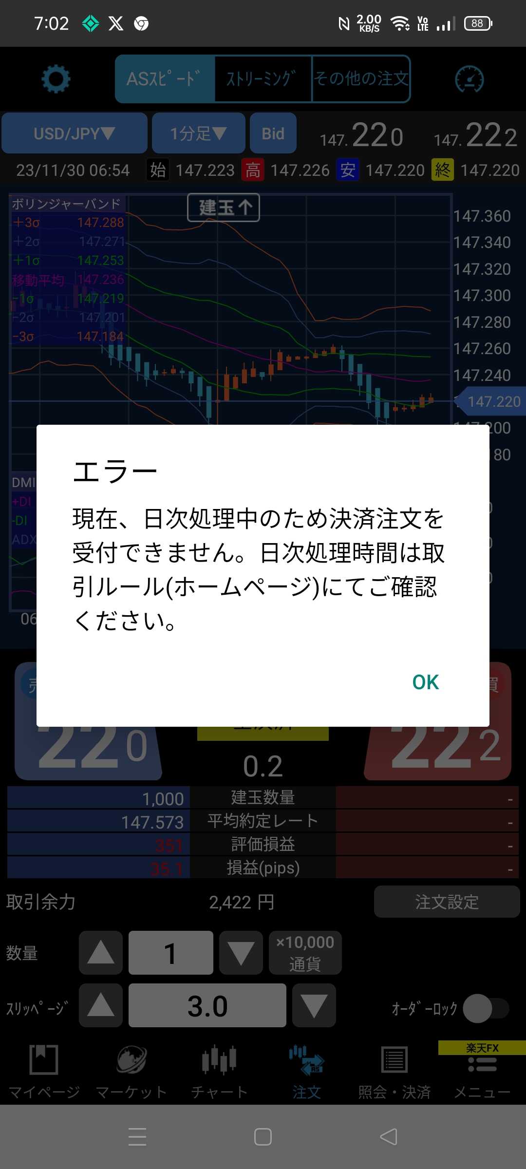 https://www.rakuten-bank.co.jp/assets/fx/otcfx/rule/time.html楽天FXの取引が出来ない時間帯は今日だけで見れば火〜金で6:55〜7:10の間の様だお♪FXで利益を出し続けるのってこんなに簡単だったなんて知らなかったお♪そろそろ掛金を10倍の10000通貨取引をやっても良いくらいの勝率だお♪だけどもだっけど油断大敵だお♪1000通貨取引をやって行き増やして2000通貨取引をしたら良いお♪その流れで10000通貨取引に挑もうかなお♪とはいえ 1日800円増えてくだけだと飽きが来ちゃいそうだお♪ただのYou TubeにUPのネタ的な登録者数を増やしたいだけの予定だったけどぉ♪方向性が(/ω¥\)チラッ目がお金になってきたお♪買い決算してから買いエントリーしてまふお♪エントリーしたらチャートから目が離せられないから損してもいいのでこのまま13時まで放置と決めたお♪ゆとりの時間大切だお♪