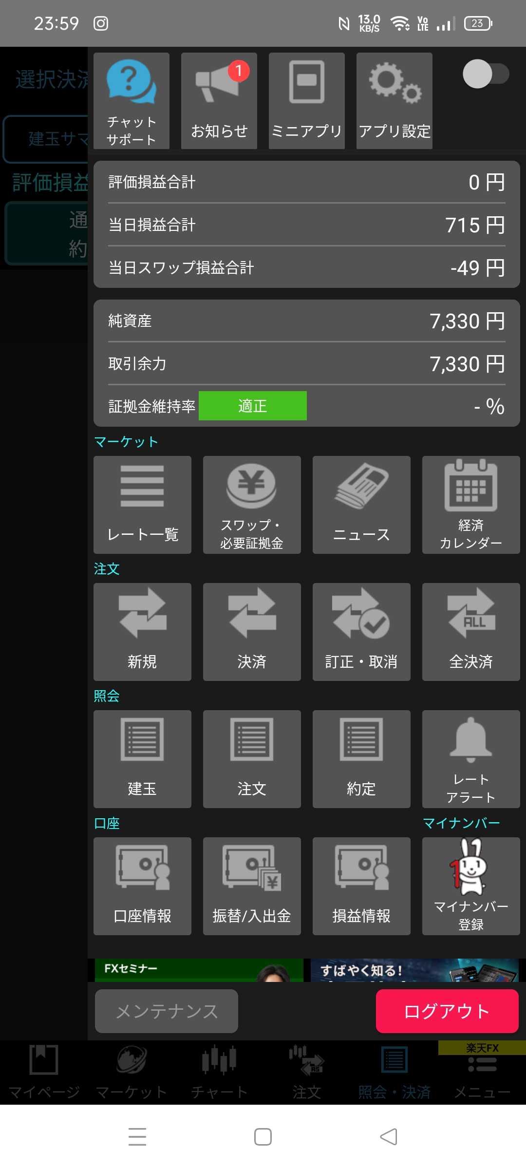 スキャルピングの数分取引で勝利でふお♪今日は660円増えただけで満足して終了しましたお♪って思っていたら3枚目の画像を見たら辻褄が合わないお!?総理大臣が確定では ないけれど?決まって3円の円高だお♪スキャルピング取引のはずが水曜から木曜日にかけて売りで保有し続けてしまいマイナスのスワップポイントだお!?マイナスの表示は次の画像で見てお♪次の日に10時間位かけて取り戻したお♪FXの損切りは基本取引余力がカギなのでふお♪使わないお金が沢山あれば安泰だお♪10ロット取引している場合 取引余力が10ロット分入れておきたいお♪詳しく知らないけれど5〜6円マイナスでもロスカットされないと踏んでいまふお♪昨日みたいな数分で3円動いたら取引余力なしだとロスカットされちゃうかもだお♪