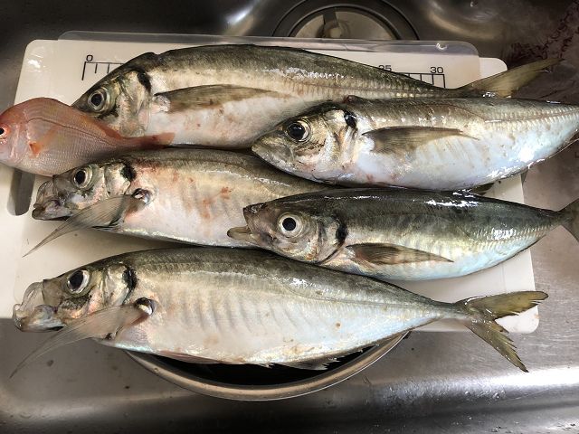 嫁の釣ったアジ。計10匹。全て尺UP。ナイス!
