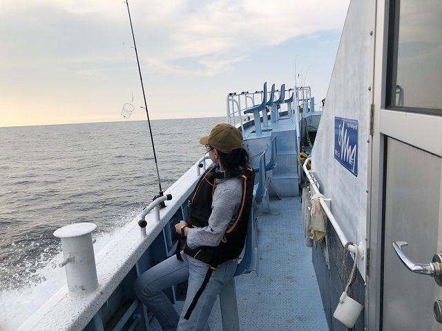 他の同船者は、前回乗った時に後ろでイカメタル専門に頑張ってたどこかのスタッフっぽいお兄ちゃんたちと、去年の秋に乗った時に金色のリールで頑張ってた年配のおいちゃん。