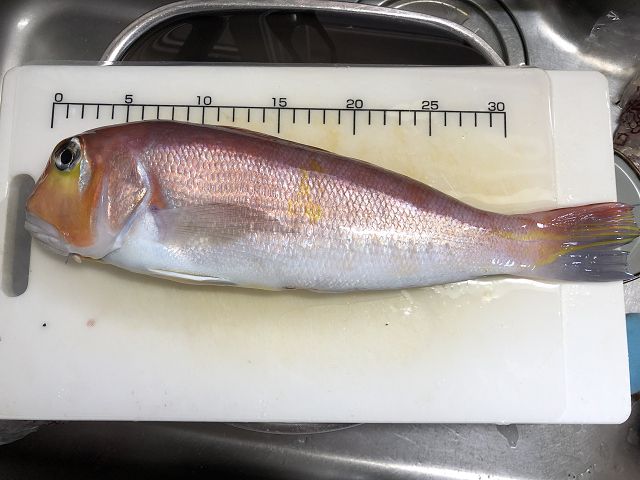 アマダイ!!!しかもでっかい!(相変わらずまな板の上の写真で申し訳ない