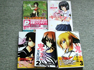 古本届いた その03。七人の武器屋1/7、キミキス Varius Heroines3巻、鬼ごっこ1巻2巻3巻。七人の武器屋1/7七人の武器屋1/7角川コミックスドラゴンJr. 著者:今野隼史出版社:富士見書房/角川グループパブリッサイズ:コミックページ数:127p発行年月:2007年12月この著者の新着メールを登録するこの商品の関連ジャンルです。 ・本> コミック> その他楽天ブックス¥567キミキス Varius Heroines3巻キミキス(3)various heroinesJets comics 著者:東雲太郎/エンターブレイン出版社:白泉社サイズ:コミックページ数:222p発行年月:2007年12月この著者の新着メールを登録する今巻のヒロインは、究極のお嬢様「祇条深月!」 一般庶民な主人公との「格差恋愛」を克服できるのか!? 大人気恋愛シミュレーションゲームコミカライズ、待望の第3巻!この商品の関連ジャンルです。 ・本> コミック> 青年> 白泉社 ジェッツC楽天ブックス¥580鬼ごっこ1巻2巻3巻鬼ごっこ(1)Rex comics 著者:黒柾志西出版社:一迅社サイズ:コミックページ数:190p発行年月:2006年11月この著者の新着メールを登録する源頼子はある日突然“異形の者”に襲われ瀕死の状況になる。窮地を救ったのは、クラスメイトである綺燐とその兄の虚颯であった。頼子を狙う“異形の者”の狙いとは? そして、それを阻止せんとする綺燐と虚颯の目的はいったい!?「継ぐ者」と呼ばれる力に惹かれ、戦いの幕は開く!描き下ろし要素満載! さらに“ちょっとHな”描き下ろしエピソードも収録!!連載開始時から超美麗な絵柄と繊細なタッチで大人気和風伝奇活劇『鬼ごっこ 第1巻』ついに登場!!この商品の関連ジャンルです。 ・本> コミック> 青年> 一迅社 REXC楽天ブックス¥580鬼ごっこ(2)Rex comics 著者:黒柾志西出版社:一迅社サイズ:コミックページ数:186p発行年月:2007年05月この著者の新着メールを登録する「継ぐ者」のチカラに目覚めた頼子を狙う“異形の者”たち!猫又のシノの協力と、綺燐と虚颯の助けにより辛くも退けるが、虚颯の身体に異変が--。虚颯の療養のため妖の里へと帰った綺燐を追い、頼子は里へと向かう。しかし、里で頼子を待ち受けていたのは、妖たちの敵意であった…。圧倒的な描画力で送る『鬼ごっこ』第2集!!この商品の関連ジャンルです。 ・本> コミック> 青年> 一迅社 REXC楽天ブックス¥580鬼ごっこ(3)Rex comics 著者:黒柾志西出版社:一迅社サイズ:コミックページ数:190p発行年月:2008年05月この著者の新着メールを登録するこの商品の関連ジャンルです。 ・本> コミック> その他楽天ブックス¥580